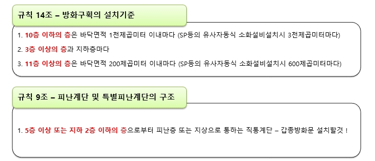 관련법 링크 클릭- 건축물의 피난ㆍ방화구조등의기준에관한규칙/(20170726,00443,20170726)/제14조