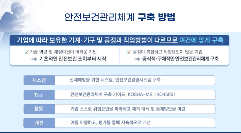 08:58 안전보건관리체계 구축 방법은?