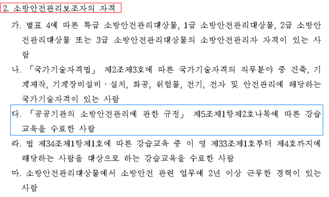2호 소방안전관리보조자의 자격